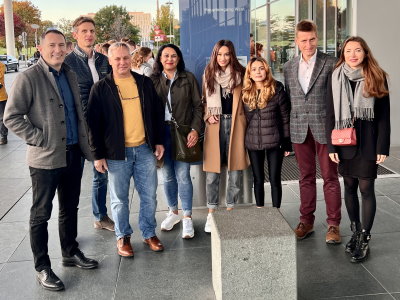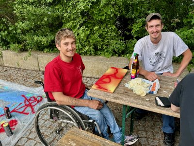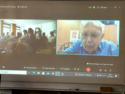 Nachmittags präsentierten die Schülerinnen und Schüler in der Aula ihre Ergebnisse und Erfahrungen, die sie an diesem Tag gemacht haben. Zum Schluss kam der Höhepunkt mit einem selbst geschriebene Song zum Thema Demokratie, der auf der Bühne von einem Rapper und Schülern gerappt wurde.