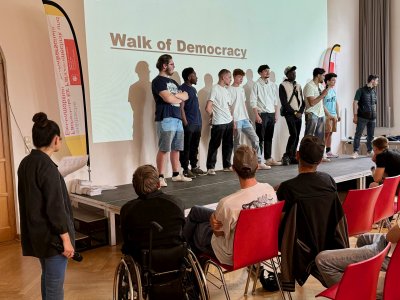 Anschließend arbeiteten die Schülerinnen und Schüler in ihren jeweiligen Workshops wie z.B. Gespräch mit einem Zeitzeugen in Israel oder nahmen an dem Walk of Democracy teil.