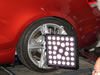 bei der Anlage ist, dass mehrere Kameras an den Rädern angebrachte "Targets" aufnehmen. So wird trotz