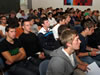 Absolventen und Absolventinnen, Lehrer und Firmenvertreter.