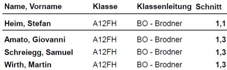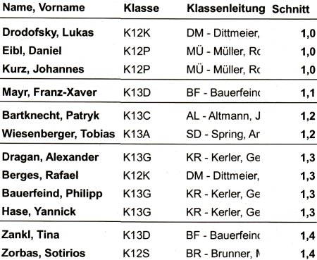 - davon 3 mit Schnitt 1,0!