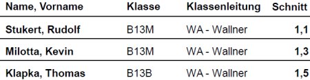 Schulschnitt der Abschlusszeugnisse: