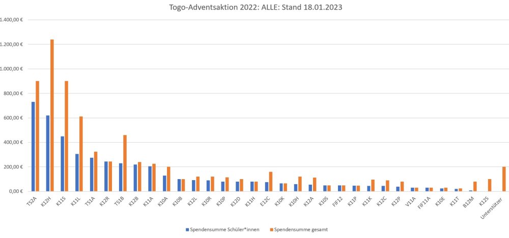 Davon wurden von den SchülerInnen allein € 4.583,87 gespendet, der Rest wurde von LehrerInnen und UnterstützerInnen (z.B. Familien, Freunden) draufgelegt.