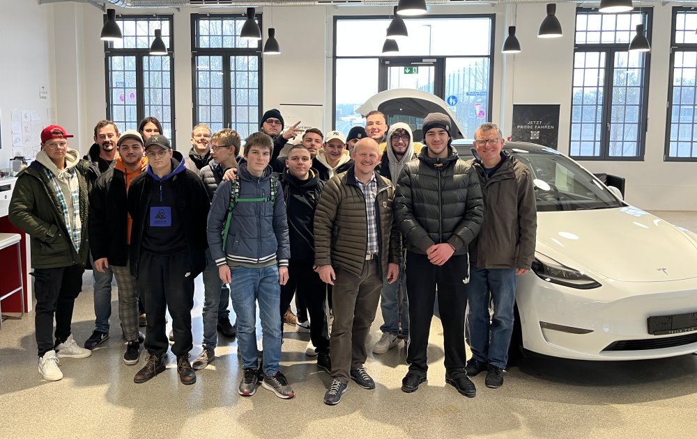 Am 10., 17. und 24. Januar 2023 besuchten die drei Hochvolt-Klassen K12A, K12H und K12P das Tesla Center München Freiham. Mit Dabei waren die KollegInnen Ulli Trost, Ronny Müller und Hans Graßl. Der neue Tesla-Standort „Triebwerk“ befindet sich in einem historischen Gebäude des ehemaligen Eisenbahn-Ausbesserungswerks Neuaubing. Wo früher Lokomotiven und Waggons repariert wurden, werden heute hochmoderne Elektrofahrzeuge gewartet.