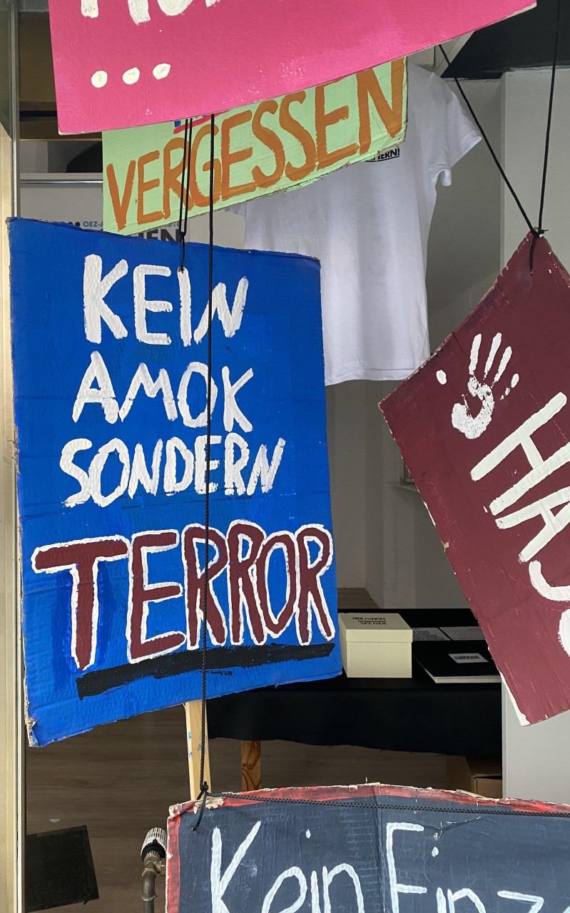 Am neuen Gedenkort kann man sich ein T-Shirt mit den Namen und Bildern der neun Opfer kaufen, damit diese in Erinnerung bleiben, benannt und nicht vergessen werden.