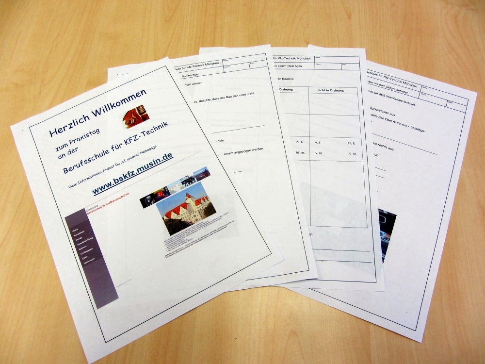 Nach der Einführung in das Berufsbild des Kfz- Mechatronikers-/in und den Ablauf der dualen Ausbildung wurde es ernst. Die Mittelschüler/-innen absolvierten in der dreistündigen Praxiseinheit mehrere Stationen. So wurde unter anderem ein Radwechsel durchgeführt, ebenso die Diagnose mit einem Tester Stand auf dem Programm. Bei einer TÜV - Untersuchung wurden in einem Fahrzeug verschiedene Fehler eingebaut, die gefunden und dokumentiert werden mussten. Eigens von uns erstellte Arbeitsblätter wurden dafür genutzt, damit die Mittelschüler/-innen möglichst so arbeiten, wie es unsere Berufsschüler/-innen von den Praxiseinheiten gewohnt sind. Anschließend konnten die Schüler/-innen andere Praxisräume und insbesondere unsere Ausbildungsfahrzeuge besichtigen. Zum Abschluss ging es noch in eine Berufsschulklasse. Dort hatten sie die Möglichkeit genutzt, um ausbildungsspezifische Fragen zu stellen.