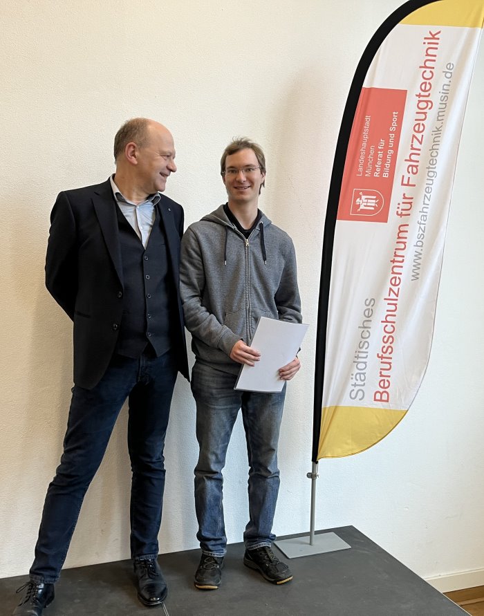 Meier, B13m, mit Stellvertretendem Schulleiter Wallner. Herr Meier war der Beste der