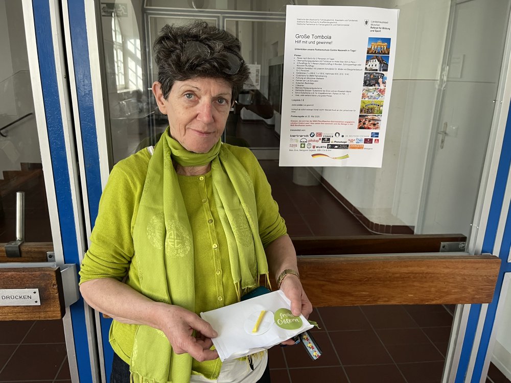 Diese verlief jedoch sehr geordnet. Viele SchülerInnen freuten sich über die großen und kleinen Preise und nahmen es mit Humor, wenn einmal ein Preis nicht so passte und sich auch kein „Ersatz-Preis“ auf unserem „Tausch-Tisch“, der sich bald etablierte und als nützlich erwies, wenn z.B. ein Eisenbahner einen Gutschein für einen Kfz-Prüfungstrainer gewann. „Macht nichts! Wir haben ja nicht wegen der Preise mitgemacht, sondern wegen der guten Sache und Partnerschule“, hörten wir öfter.