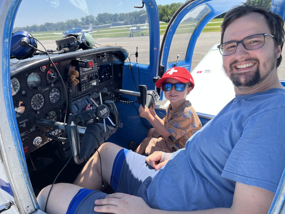 Einer der Hauptpreise: Unser Schüler Dominik Bollinger mit Sohn beim Rundflug bzw. Schnupperflug