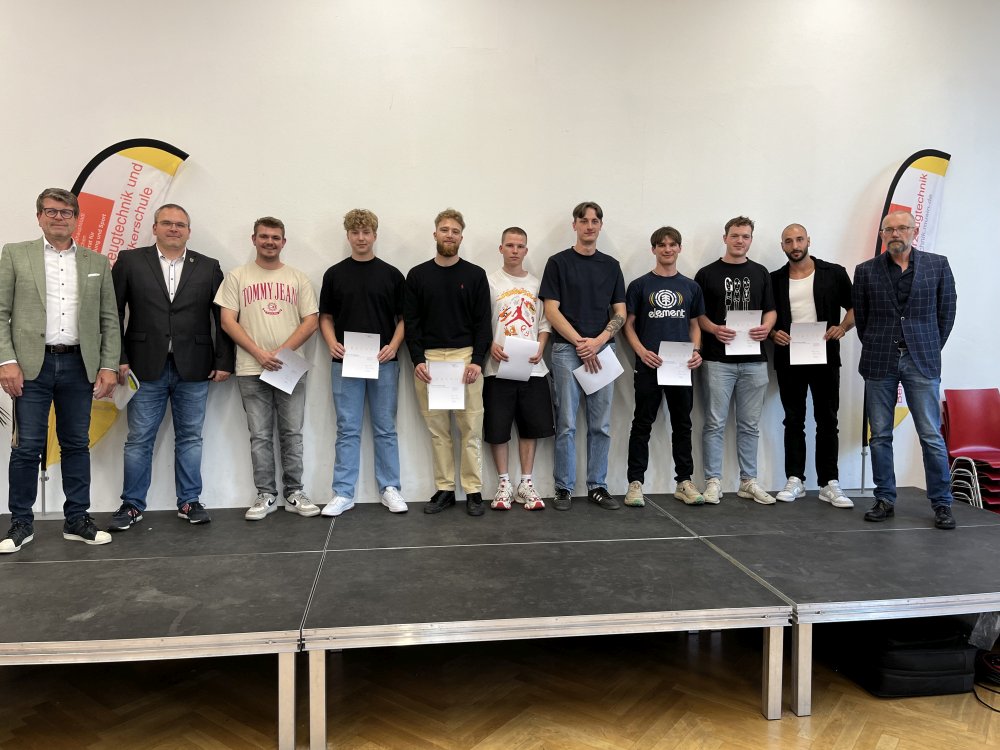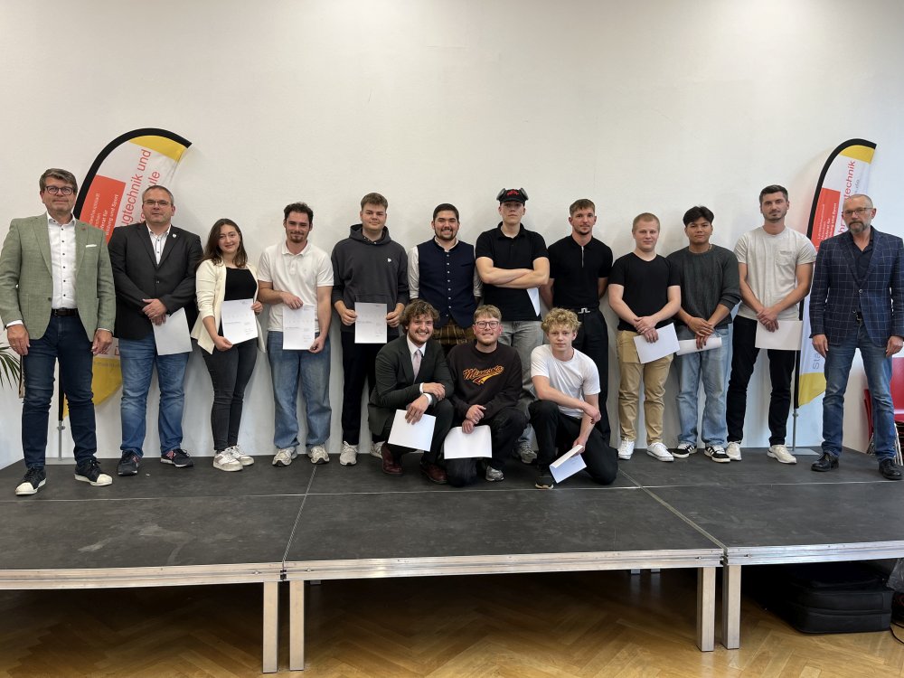 Die Besten der Kfz-Mechatronikerinnen und Kfz-Mechatroniker der Berufsschule für Kfz-Technik (Namen aus Datenschutzgründen abgekürzt):