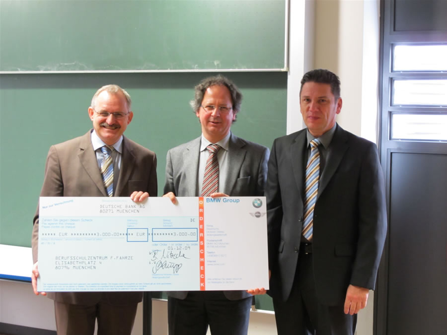 Herr Theunert, Herr Keil, Herr Kroneder mit dem Scheck