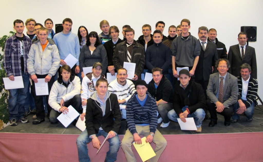 Abschlussfeier Januar 2010 - Gruppenbild (Notenschnitt 1,5 oder besser) mit Ausbildern