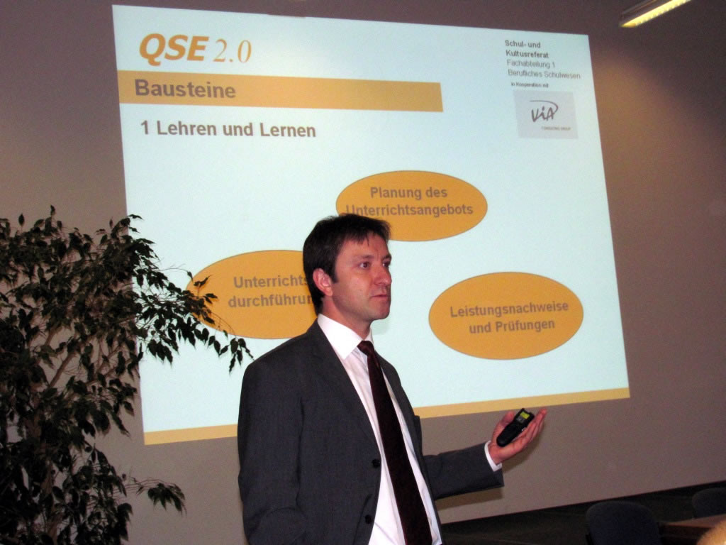 QSE 2.0 - Externe Evaluierung - Herr Lehner bei seinem Vortrag
